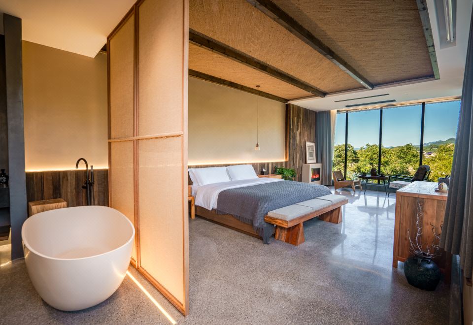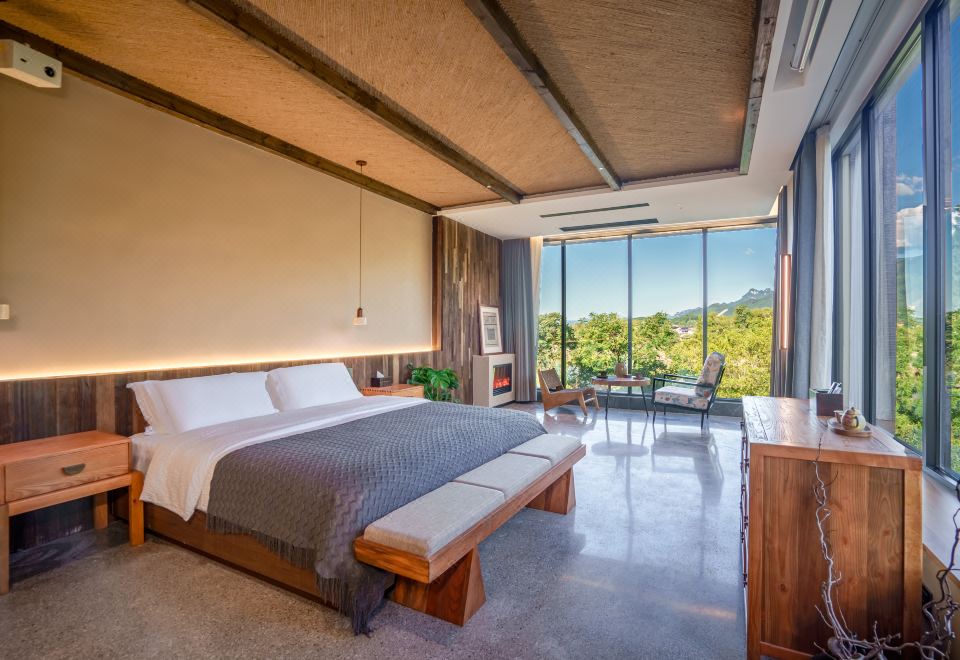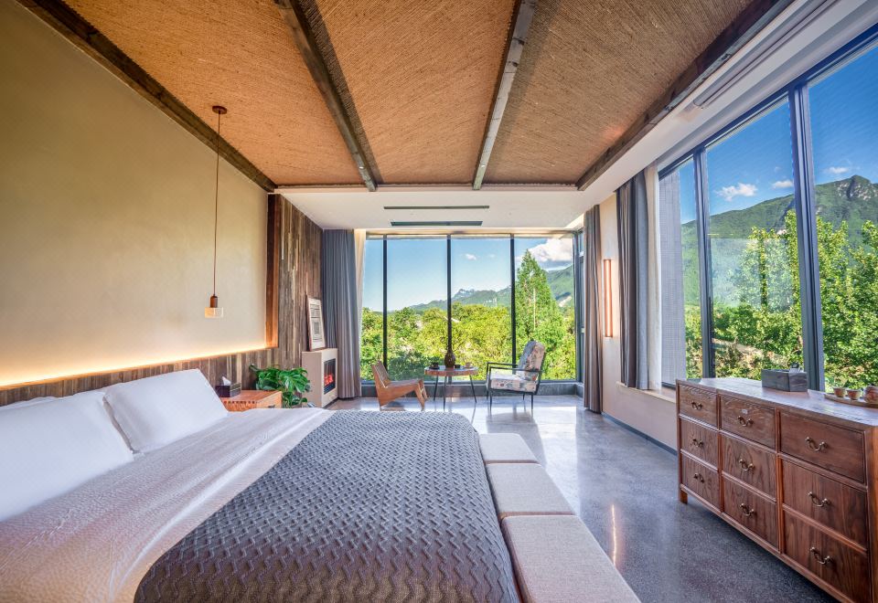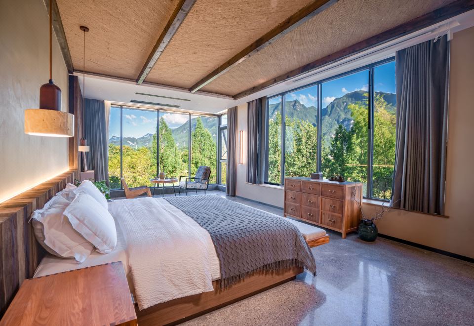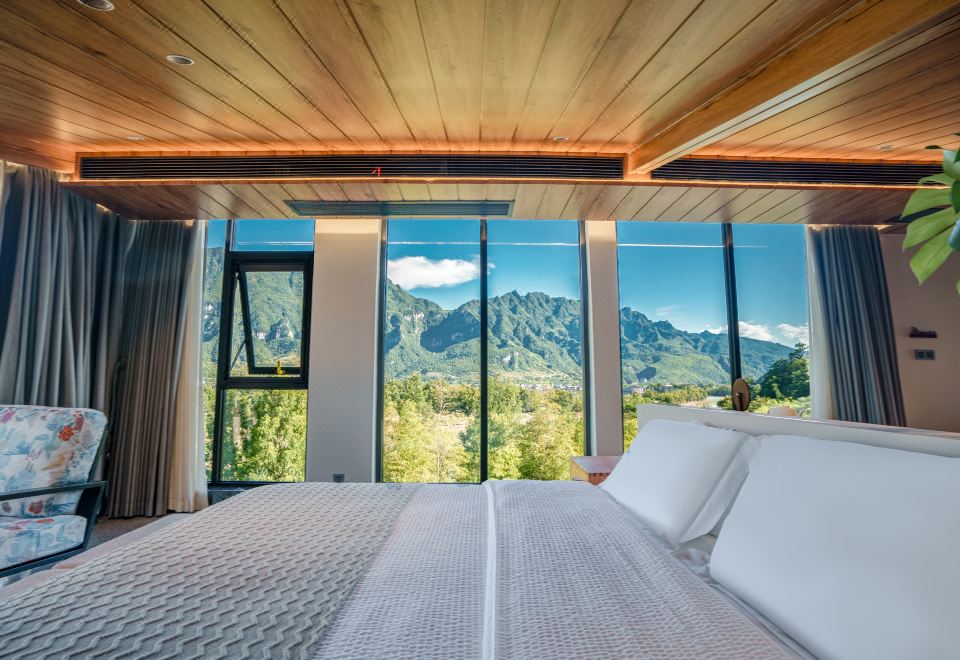 全屋地暖·山色入怀 | 270°山河景浴缸大床房|取暖壁炉